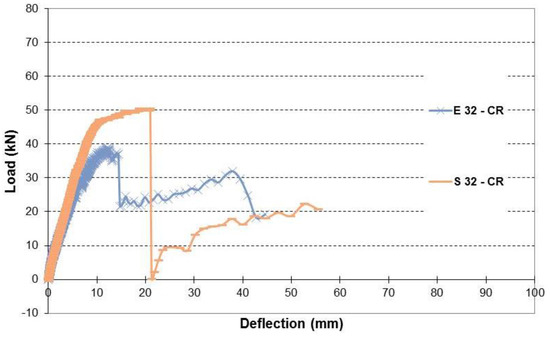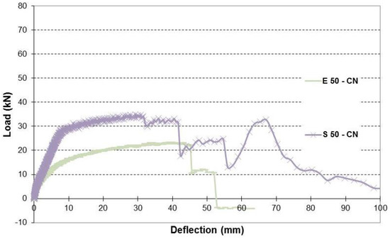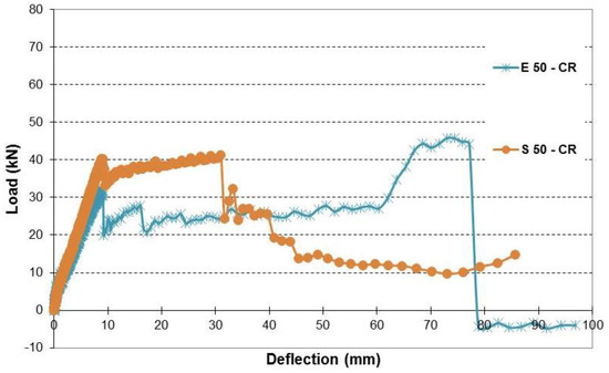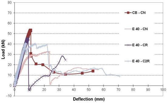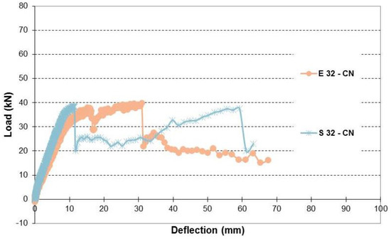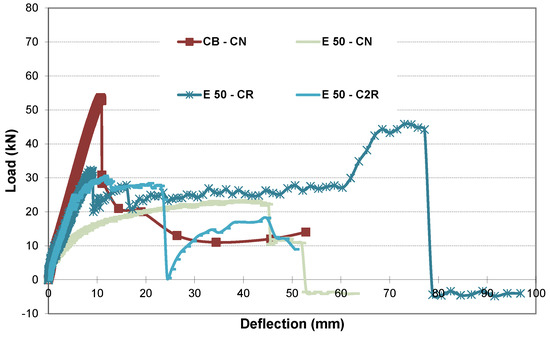 | Beam | Load Capacity (kN) | Change % from CB–CN | Change % from S 10–CN | Change % from S 20–CN | Change % from S 32–CN | Change % from S 50–CN | Change % from E 10–CN | Change % from E 20–CN | Change % from E 32–CN | Change % from E 40–CN | Change % from E 50–CN | Change % from E 10–CR | Change % from E 20–CR | Change % from E 32–CR | Change % from E 40–CR | Change % from E 50–CR |