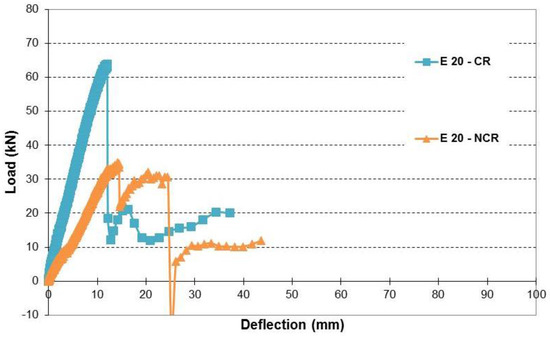 | E 20–CN | Two splitting cracks; one on each side, crack at mid-span, and crushing of top concrete. |