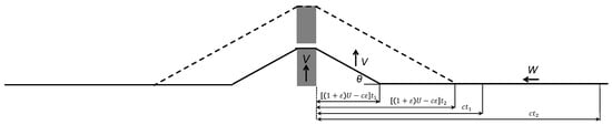Material behind the transverse wave front transitions from an inward velocity (perpendicular to the projectile direction) to a particle velocity identical in magnitude and direction to that of the projectile, being described by Equation (6). U differs from in that the reference frame of the former is attached to the inward flowing yarn material and the latter is attached to an external viewer. Solving Equations (2)–(6) allows for determination of the strain developed in the yarn at a specific impacting velocity, V, or vice versa, one can solve for the velocity required to initiate a specific strain value, .