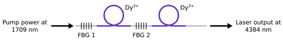 It is also worthwhile to note that rare-earth doped resonant structures, such as microdisks and microspheres, coupled to fibers, could be exploited to obtain narrow line lasing [37,38]. Moreover, different gain media as Cr3+:ZnS and Cr3+:ZnSe can provide laser emission in the 2–3 µm wavelength range [39].