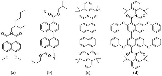 - Müller, G.R.J.; Meiners, C.; Enkelmann, V.; Geerts, Y.; Müllen, K. Liquid crystalline perylene-3,4-dicarboximide derivatives with high thermal and photochemical stability. J. Mater. Chem. 1998, 8, 61–64. [Google Scholar] [CrossRef]