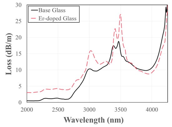 Measured fiber loss of the base tellurite glass and the Er-doped tellurite glass.