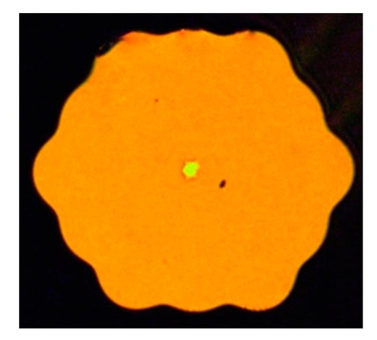 Cross section of tellurite fiber showing core and hexagonal shape (125 µm).