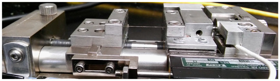 For tensile testing, a gauge length of 20 mm was selected for proper handling of the fiber specimens. A Deben micro-tensile tester (Deben UK Ltd., Suffolk, UK), which is more generally used for in-situ observation of a specimen under tension in an electron microscope, was selected for the testing. The maximum load that can be measured with the machine is 180 N with a load cell linearity of 1.5%. Force and position resolution of the machine were 0.001 N and 0.0001 mm respectively. Displacement rate of the crosshead was selected to be 0.75 mm/min, resulting in a strain rate of 0.000625 s−1. ASTM standard D3822 was followed for determining the mechanical properties of the fibers. The fibers were mounted using clamping forces as shown in Figure 1.