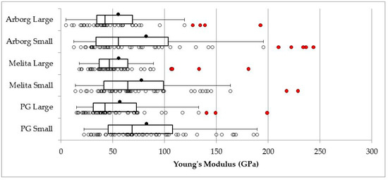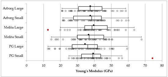Unlike the strength results, the Young’s modulus results do not show a strong statistical trend at both facilities for stem size, location, or variety. The NDSU data suggested that there is a trend that the small stem samples are statistically different than their large stem counterparts. This relationship was substantiated by CIC’s data in only one case, PG Small vs. PG Large.