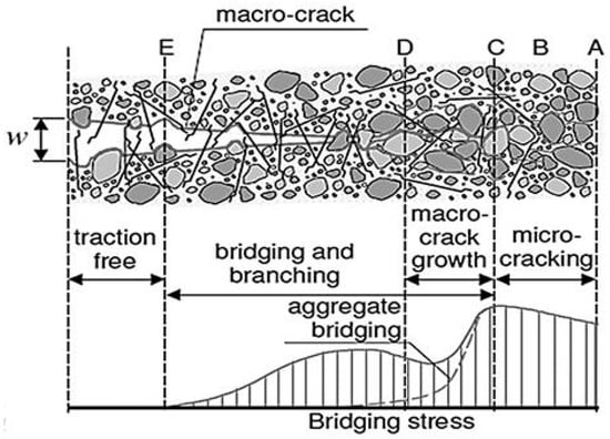 Schematic description of the effect of fiber on the fracture process of concrete in tensile loading []. Reproduced with permission from Löfgren, 2005.