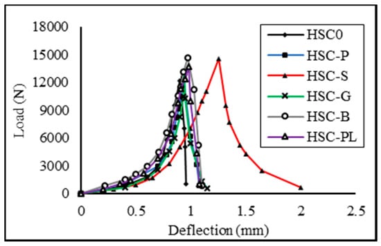 Concrete is known as one of the most applicable building materials all across the world. Its economy, the accessibility of its components, its suitable strength under different environmental conditions, and its high compressive strength are among the desired factors of concrete as a construction material [,,]. Over the last several years, the concrete industry has experienced growth and development, which has led to the generation and development of concretes with high quality and applicability, such as high-performance concrete (HPC) and high-strength concrete (HSC) []. Nevertheless, concrete is weak against tensile strength and high strain, which can be compensated to a certain extent with reinforcement or fibers [,,].
