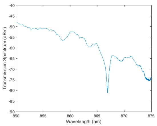 Transmission spectrum of the LPG inscribed with the KrF pulsed laser 248 nm as reported in [].
