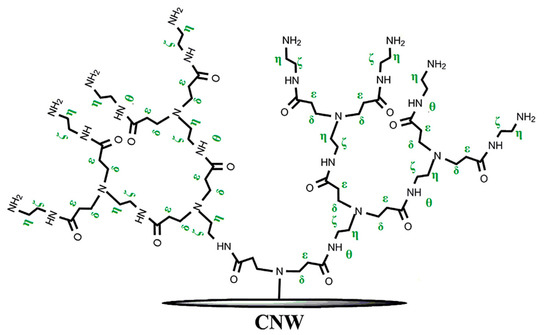 Chemical structure of G3 CNC-grafted PAMAM (Adapted from reference [87] with permission from Elsevier, copyright 2015).