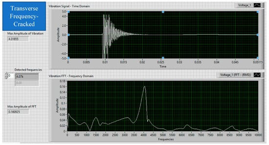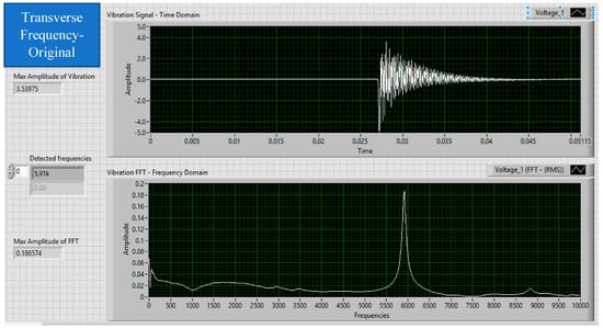 The Fast Fourier Transform (FFT) requirements are modeled in a visual instrument (VI) program using National Instrument’s LabVIEW 2014 (NI LabVIEW) (National Instrument, Austin, TX, USA). The program was exclusively developed for this study considering ASTM C215 for acquisition requirements. Exponential windowing and averaging, along with a discrete frequency domain, were examined to ensure output noise reduction and coherence. All waveform acceleration responses were digitized in the time domain to 1024 samples at a sampling acquisition rate of 20 kHz. The sampling rate of a data acquisition system should be large enough for determining the highest predicted frequency to fulfill the Nyquist frequency. This led to a signal response time of 51.2 ms along with a sample interval (SI) of 25 μs. The spectral line spacing in the frequency domain, or digital step, is 19.5 Hz and the Nyquist frequency for the response is 10 kHz.