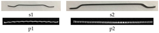 Steel fibers (s1, s2) and macro-synthetic fibers (p1, p2) used in this study.