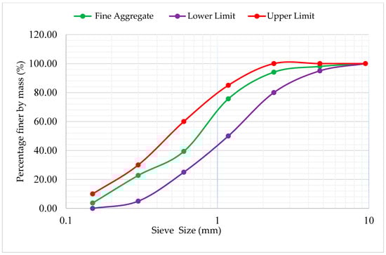 River sand, passing a 4.75 mm standard sieve, constitutes the fine aggregate. The sand conforms to ASTM C33 [16] requirements. Its properties are summarized in Table 4 and gradation captured in Figure 1.