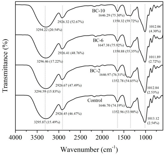 FTIR spectra of control and biocomposite films.