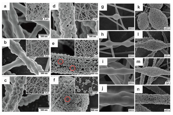 - Jin, Y.; Yang, D.; Kang, D.; Jiang, X. Fabrication of necklace-like structures via electrospinning. Langmuir 2010, 26, 1186–1190. [Google Scholar] [CrossRef] [PubMed]