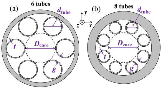 - Wei, C.; Menyuk, C.R.; Hu, J. Impact of cladding tubes in chalcogenide negative curvature fibers. IEEE Photonics J. 2016, 8, 2200509. [Google Scholar] [CrossRef]