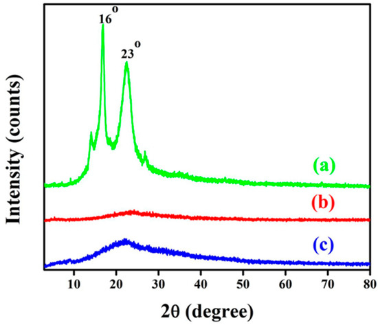 Ginger spent was obtained from Plant Lipids (P) Ltd., Kerala, India after the isolation of natural ingredients, such as gingerols and shogaol. The powdered ginger agro-waste was washed with distilled water to remove dirt, dust, and water-soluble impurities. Then the ginger spent was dried before the isolation of GNF, which was produced as per the protocol described earlier, with some modifications [28]. Cleaned ginger residues were treated with 4% NaOH solution (w/w) at 80 °C, for 2 h, under mechanical stirring which removed the residual additives, such as partially solubilized pectin, lignin, and hemicellulose impurities. After each treatment, the obtained reaction mass was filtered and washed with distilled water, until the filtrate became neutral. After this alkali treatment, the fiber was decolorized with aqueous 3% sodium chlorite (w/w) to bleach and leach the fiber. This process was accomplished at 80 °C, for 2 h, and was repeated two times. The resultant fiber was washed continuously in distilled water, until the complete removal of sodium chlorite. After this, the residue was hydrolyzed using 10% H2SO4 (w/w), at 80 °C, for 2 h, using mechanical stirring. The acid hydrolysis treatment helped in leaching out traces of minerals, residual starch, and also hydrolyzed amorphous cellulose and eased in getting the required fiber suspension. After the acid hydrolysis, the reaction mass was cooled with ice cubes to quench the hydrolysis, washed with distilled water, and centrifuged for 20 min, at 8000 rpm, at 10 °C. The resulted suspension was homogenized using APV 1000 homogenizer (SPX Flow Technology, Holzwickede, Germany) with five passes, with an operating pressure of 1000 bar, and filtered using a glass filter to obtain the GNF. The GNF solution was concentrated to near 2–3% (by weight) dispersion and kept under refrigeration to make composites.