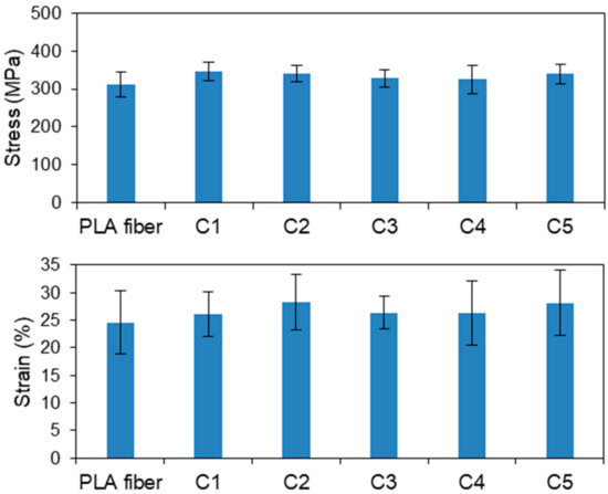 Tensile stresses and strains of the CS-coated PLA fibers based on P1.