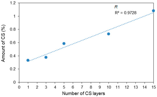 Amount of CS, calculated from the Kjeldahl-determined amount of nitrogen, as a function of the number of CS layers.