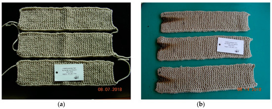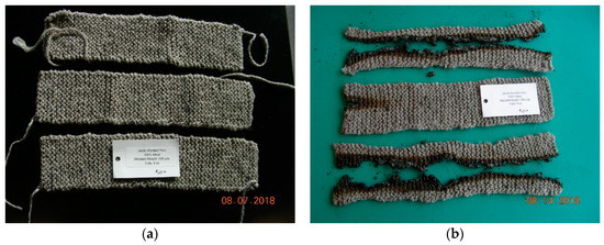 Observed fire behavior for each of the samples tested is described in Table 3, and the samples before and after burning are shown in Figure 13, Figure 14, Figure 15, Figure 16 and Figure 17.