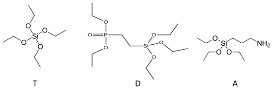 Silane precursors used in the study (T = TEOS, D = DEPTES, and A = APTES).