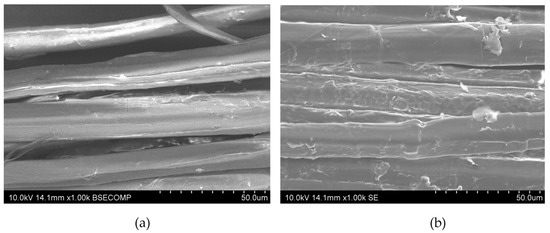 SEM images pictures of treated fibers B-T (a) and B-TD (b) (×1000).