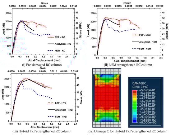 - Chellapandian, M.; Prakash, S.S. Behavior of FRP strengthened RC columns under pure compression—Experimental and numerical studies. In Recent Advances in Structural Engineering: Select Proceedings of SEC 2016; Springer: Singapore, 2019; pp. 663–673. [Google Scholar]