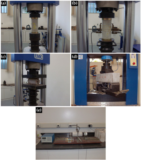 - De Figueiredo Maia, A.L.; Oliveira Sena, N.; de Oliveira, L.L.M.S.; Melo Pereira, G.; da Silva, M.J.; Resende, D.S.; da Silva Neto, J.T.; de Aguilar, M.T.P.; Bezerra, A.C.S. Evaluation of Sample Preparation Parameters in the Compressive Strength of Cementitious Composites. Mater. Sci. Forum 2016, 869, 93–97. [Google Scholar] [CrossRef]