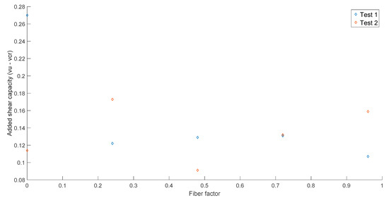 Added shear capacity based on normalized shear stress vs. fiber factor.