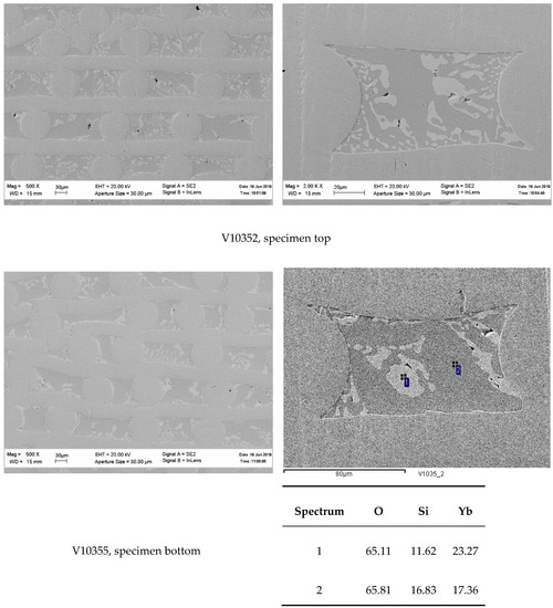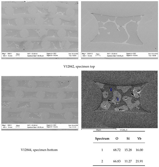 Finally, it should be noted that an optimal composition of the fibers under consideration depends on the usage of the fibers in a particular matrix. For example, varying the monosilicate to disilicate ratio can produce fibers with CTEs varying from 8 × 10−6 K−1 to 4 × 10−6 K−1. Potential molybdenum matrices have CTE around 6 × 10−6 K−1; for oxide matrices, this value is around 8 × 10−6 K−1. The inclusion of ytterbia into consideration expands possibilities of the fiber microstructure optimization.