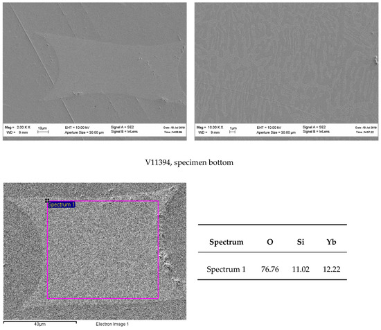 The presence of the monosilicate in the fibers was most probably due to a partial evaporation of silica from the raw oxides’ melt. Hence, if an aim of the work was to obtain a homogeneous ytterbium disilicate fiber, then a correction of the mixture of raw oxides was needed.