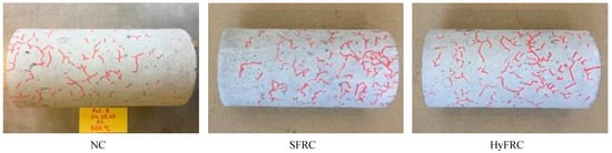 Typical thermal cracks observed for the cylinders used for split tensile strength tests after exposure to maximum temperature of 600 °C.
