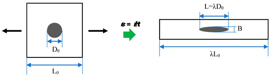 Schematic representation of the affine deformation of a single drop in matrix before and after deformation. and λ are the initial and final lengths of the specimen, respectively. is the initial drop diameter and λ is the major axis of the elongated droplet.