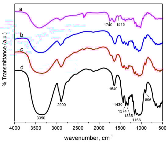 - Travalini, A.P.; Prestes, E.; Pinheiro, L.A.; Demiate, I.M. Extraction and characterization of nanocrystalline cellulose from cassava bagasse. J. Polym. Environ. 2018, 26, 789–797. [Google Scholar] [CrossRef]