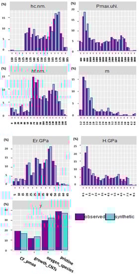 The reduction of the data population to 144 observations lead to inability of this model to classify the mechanism of reinforcement in most cases (Table 4). This may be attributed to the undersampling risk of losing important information contained in the majority class [15], especially in small datasets. Consequently, it would be ideal if oversampling is performed and each class population reaches the number of majority class observations. However, lack of data in this case identifies SMOTE (selective oversampling of minority classes) as a more appropriate strategy to handle the imbalanced dataset. Synthetic data were produced by using package “synthpop.” The results are reproducible and representative for each class (Figure 4), in order to create the new training dataset. The model was tuned at (degree, Coef0, gamma, cost): (6, 0.5, 0.1, 1). Afterwards, an original test set was used to evaluate the model functionality.