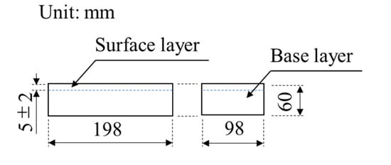 The surface layer concrete was prepared using an oscillating type mixer (OM-70NB8). First, the cement and the quartz sand were placed into the mixer and dry mixed for 20 s at low speed (rotation speed: 120 ± 5 rpm). After that, the mixer speed was changed to high speed (rotation speed: 216 ± 5 rpm), and the dry mixing was continued for 30 s. Then, the water and admixture were placed into the mixer and mixed for another 20 s at low speed (rotation speed: 120 ± 5 rpm) and 50 s at high speed (rotation speed: 216 ± 5 rpm).