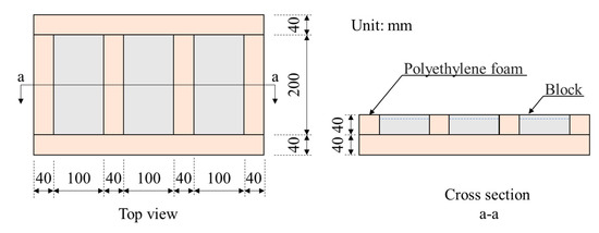 The surface layer of all interlocking concrete blocks was made by using white Portland cement (WPC) and quartz sand (QS). In the case of the base layer of all interlocking concrete blocks, ordinary Portland cement (C), coarse aggregate FM: 5.00 (G), and fine aggregate FM: 3.05 (S) was used. Note that tap water (W) and the chemical admixture (CA (MasterMatrix 200, 1.03–1.07 g/cm3)) for immediate demolding products (air entrainment type) were used in both layers for the preparation of the interlocking concrete blocks.