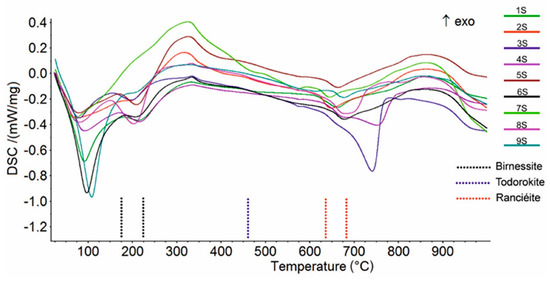 Comparison between DSC curves of the Mn oxyhydroxides samples.