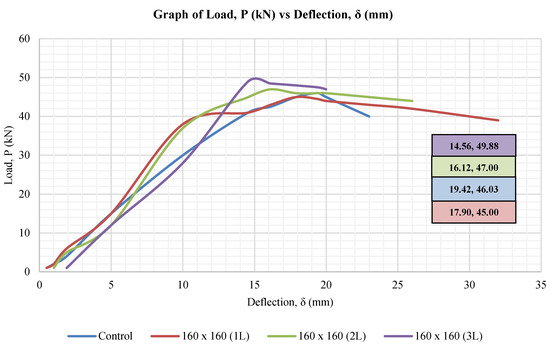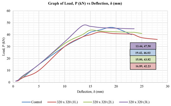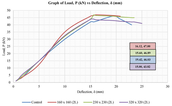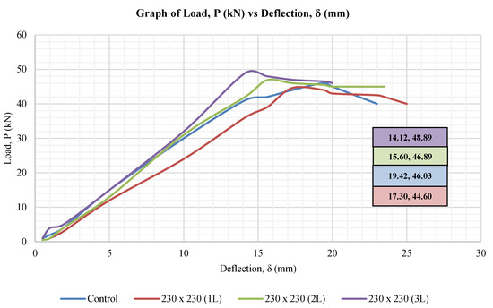 3.1. Load, P (kN) vs. Deflection, δ (mm)