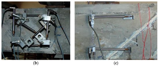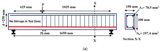 The test setup and the instrumentation details are illustrated in Figure 8. Kani [40] investigated the effect of different shear span to depth ratios on the shear behavior of RC beams. They reported a transition point for the shear span to depth ratio (a/d) of 2.5 at which the specimens will be critical in shear and the corresponding ultimate moment will be minimum. For a/d values less than 2.5, the specimens were found to develop the arch action. Moreover, for shear span to depth ratio between 2.5 and 5, the failure was found to occur by diagonal shear tension mode. Thus, a/d ratio of 2.5 was considered in the study to have shear dominated behavior. All the beams were tested in a three-point loading configuration.