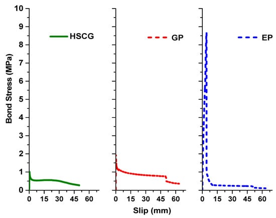 Shear stress vs. slip of different bonding materials.