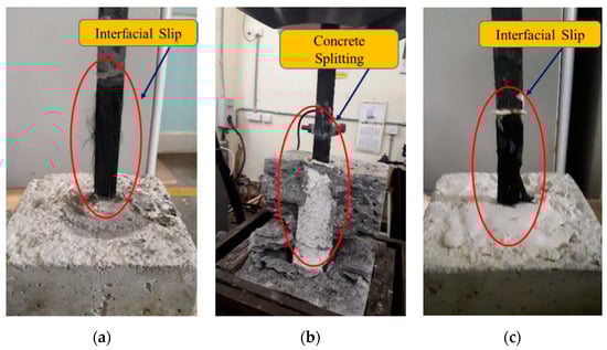 Failure mode of different bonding materials. (a) HSCG mortar; (b) Epoxy resin; (c) GP mortar.