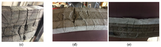 It can also be observed that the ductility of the beams decreased by adding CFRP strengthening. In addition, the ductility was reduced when using multiple layers compared to when using single-layer strips of the same area of CFRP. The modes of failure and crack patterns of series 3 beams can be seen in Figure 17, Figure 18 and Figure 19. These failure modes demonstrate that applying CFRP as multiple narrow strips results in more desirable modes of failure and strengths than when applying CFRP in multiple layers.