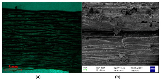 The use of natural or synthetic fibers for the development of composite materials has shown significant uses in a variety of fields. In construction industries, fiber reinforced plastic (FRP) composites have been confirmed as a sustainable structural material in bridge construction. Bridge structures use FRP or FRP–concrete hybrids as primary construction materials for bridge components, such as girders, bridge decks, and slab-on-girder bridge structures. When likened to reinforced concrete (RC) decks, FRP–concrete hybrid decks revealed higher resilience with less toughness weakening under design truckloads [1]. For machine-driven applications, like mechanical gear pair, an enhancement of about 50% in the load-carrying capacity was achieved when 28% glass fiber reinforcement was added to polyoxymethylene (POM) with a lower specific wear rate when equaled to unreinforced POM [2]. Automobile body parts, such as engine hood, dashboards, and storage tanks, were mass-produced by using reinforcements from natural fibers like bagasse, flax, banana, hemp, jute, sisal, and ramie. Aerospace application involves aircraft wing boxes produced by ramie fiber composites with a reduction in weight [3]. Hybrid kenaf/glass fiber reinforced polymer composites displayed improved mechanical properties with a resistance to rain erosion, which made the material suitable for aircraft application [4]. Carbon fiber reinforced silicon carbide is used for aircraft brakes to bear temperatures of up to 1200 °C [5]. In biomedical applications, such as dentistry and orthopedics, a variety of aramid fibers demonstrate their biomedical uses in protein immobilization that is essential for medical implants and devices. In modern orthopedic medicine, aramid fibers act as antimicrobial materials. In the marine industry, carbon fiber reinforced plastics (CFRP) display enhanced mechanical properties, like a high strength–to-weight ratio, good resistance to corrosion, fatigue, and temperature changes with a low maintenance cost making the material appropriate for marine propellers [6]. Carbon fiber skins with polymeric central sandwich composite sheets have been used for the manufacturing of entire hulls and marine craft structures [7]. Due to increased environmental consciousness and regulations, the growing request for the use nonconventional materials has leads to the development of biodegradable, sustainable, and ecofriendly materials [8,9,10].