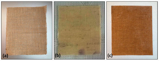 In this research, we used jute fabric as a reinforcing material along with two different polymer matrixes—i.e., polyester resin and epoxy resin. Jute is one of the cheap ligno-cellulosic fibers easily available in fiber and fabric form, and this fiber is the most promising reinforcement material for the production of bio-composites and bio-plastics due to its high content of cellulose (61–72%), hemicellulose (14–20.4%), lignin (12–13%), and pectin (0.2%) [10,12,13,14]. Lots of research can be found studying the different mechanical properties of jute fiber, which have acceptable mechanical properties [15]. Although the use of jute fabric as a reinforcing material is not so common as jute fibers over the years, several researchers have already studied different properties of jute fabric-reinforced polymer composites [16,17,18,19]. Mohanty et al. investigated the influence of chemical surface modification on the properties of biodegradable jute fabric polyester amide composites [16]. The mechanical, inter-laminar shear, notched strength, and fracture criterion properties of untreated woven jute and glass fabric-reinforced polyester hybrid composites were investigated by Ahmed et al. [18,19]. However, jute fabric as a reinforcing material can be a perfect choice because of their higher productivity, structural customization possibility, good molding ability, and lack of need for cold storage [20].