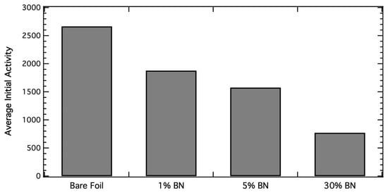 Polyethylene-based thermoplastic composites reinforced with boron nitride were investigated by Herrman et al. [72]. They embedded BN in injection-molding-grade high-density polyethylene and also tested the samples by neutron exposure of an indium foil with thermal neutrons (<0.5 MeV), with or without shielding of the foil by the BN-composites. The mass absorption cross-section was calculated from the average initial activity of the indium foils. They found a reduced initial radiation activity of the foil, that is, an increased mass absorption, with increasing amount of BN (Figure 3).