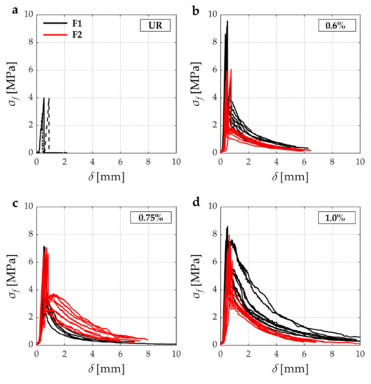 It is worth noticing that unreinforced specimens with the same mix design of the reinforced ones have been made. Therefore, any increase of mechanical properties of the fibrous mortar is due only to the fiber content.