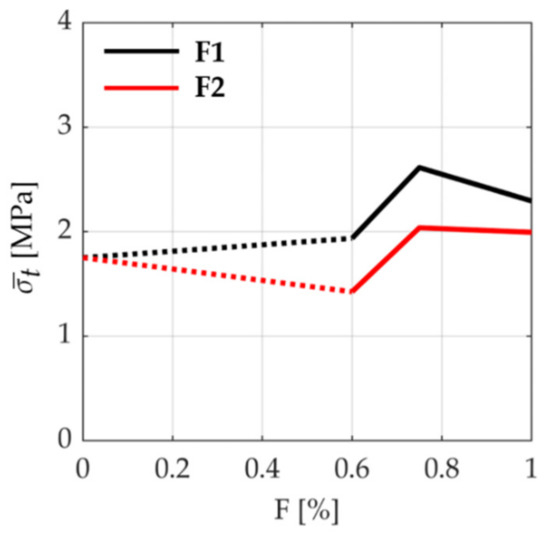 Conversely, the specimens characterized by fiber F2 with a lower fiber content did not show an improvement of both the tensile and the compressive behaviors, although the decrease of both the tensile and compressive strength was not substantial. This phenomenon can be due to the tendency of the Sisal fiber to agglomerate when the number of fibers becomes greater; the observed agglomeration can be the cause for the decreasing in the number of effective fibers and the overall lower strength.