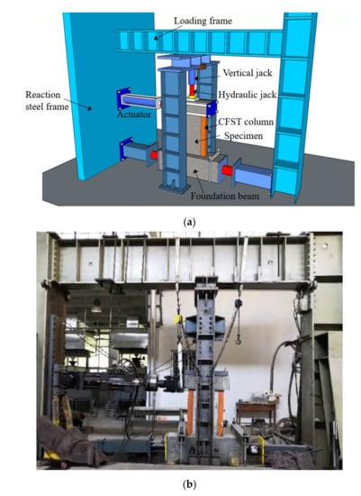 - Ministry of Housing and Urban-Rural Development of the People’s Republic of China and General Administration of Quality Supervision, Inspection and Quarantine of the People’s Republic of China. GB 50936-2014 Technical Specifications for Concrete Filled Steel Tubular Structures; China Building Industry Press: Beijing, China, 2014. [Google Scholar]
