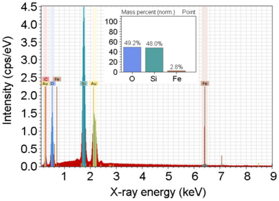 EDS analysis of the Fe+-functionalized silica microspheres.