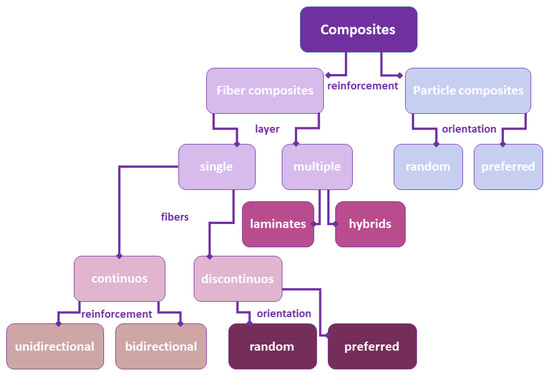 Schematization of different composite materials based on their constitution.
